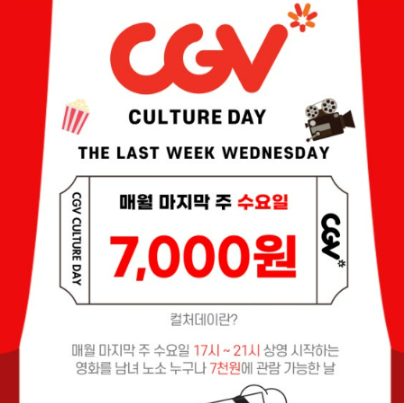 ※ 예시: 매달 마지막 수요일 ‘문화가 있는 날’(7,000원 관람)과 중복 시 → 1,000원에 영화 관람 가능